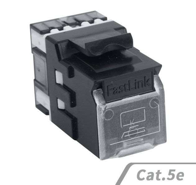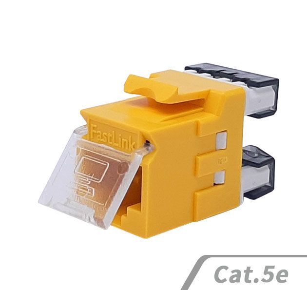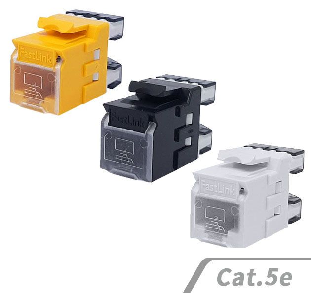 FastLinkcabsys Cat.5e RJ45非遮蔽式180度資訊插座可搭配Cat.5e跳線,具有優越的性能表現。接觸點採用50μ鍍金層的鍍鎳插頭,能有效減少信號損失,確保穩定順暢的連接。外殼由防火且耐高溫的熱塑性材料製成,具備高安全性與耐久性。配有110型 IDC 接線端子和壓線蓋提供額外的保護。