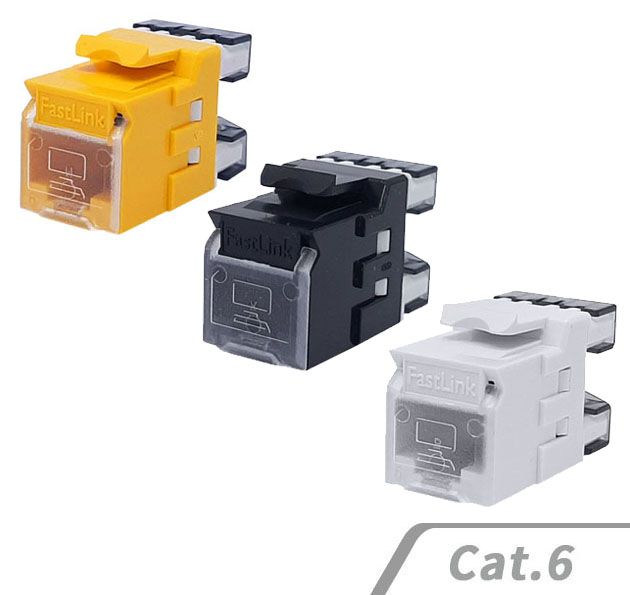 FastLinkcabsys Cat.6 RJ45非遮蔽式180度打線型資訊插座提供卓越的網路連線性能,與Cat.6和Cat.5e實心或絞合非遮蔽乙太網銅纜相容。配有與IDC端子緊密貼合的壓線蓋,牢固不易脫落,從而提升連接的穩定性和可靠性。資訊插座採用高強度 110 IDC 端子,適用於標準打線工具,經過多次打線操作仍能保持完整,不易裂開,確保長期使用的耐用性。設計簡單,操作方便,搭配緊密的壓線蓋,確保連接穩定可靠,同時保持整潔的外觀。